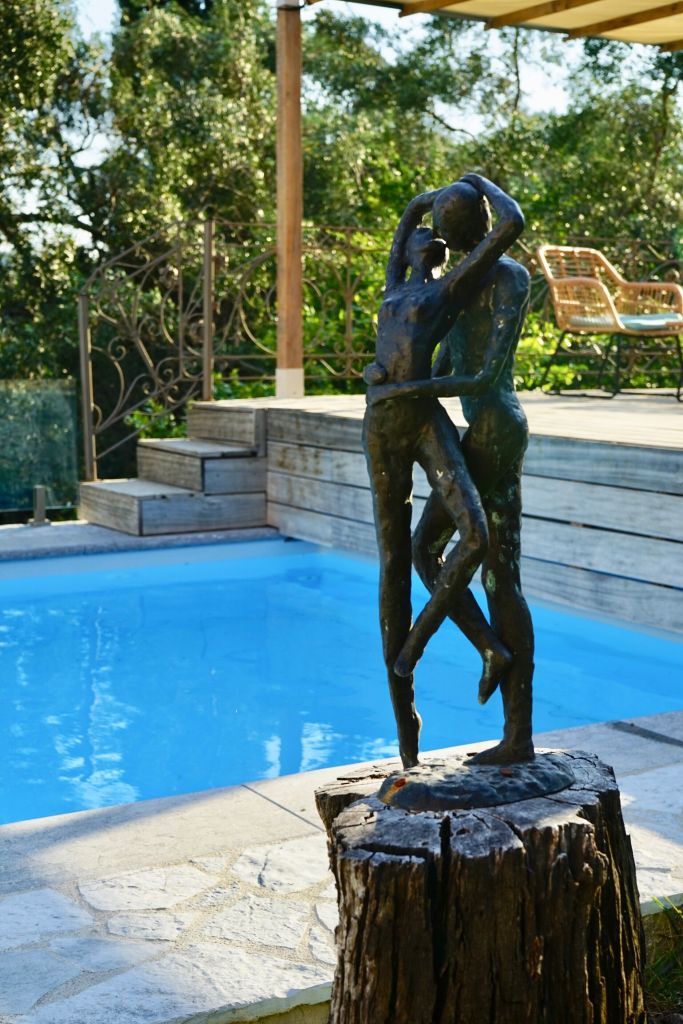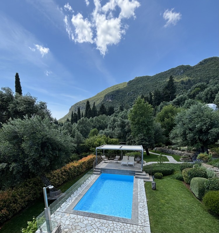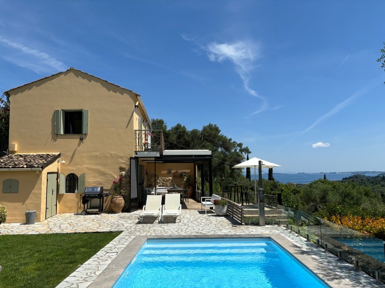 Voor verkoeling kun je een duik nemen in het zwembad. Het is verwarmd, dus ook tijdens de koelere periode kun je hierin heerlijk zwemmen. Het zwembad is 7 x 3,5 m groot, voorzien van verlichting en gemakkelijk toegankelijk met een zwembadtrap over de volle breedte. Aansluitend aan het zwembad ligt een groot terras met een loungebank, ligbedden en sfeervolle overkapping. Vanaf hier heb je een prachtig uitzicht over zee en het oude fort van Kerkyra.
