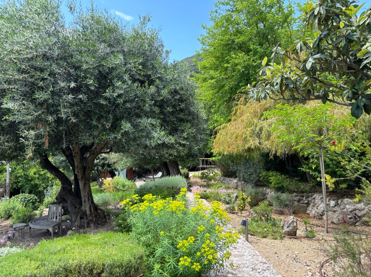 Voor de natuurliefhebbers is onze terrassentuin een waar paradijs. Tussen eeuwenoude olijf-, sinaasappel-, citroen-, loquat- en granaatappelbomen geniet je van de mediterrane geuren en kleuren. Met een beetje geluk hangen de takken vol rijpe vruchten, klaar om geplukt te worden. Daarnaast is er een geurende kruidentuin, perfect om — samen met lokale verse producten zoals vis en olijfolie — de heerlijkste gerechten te bereiden.